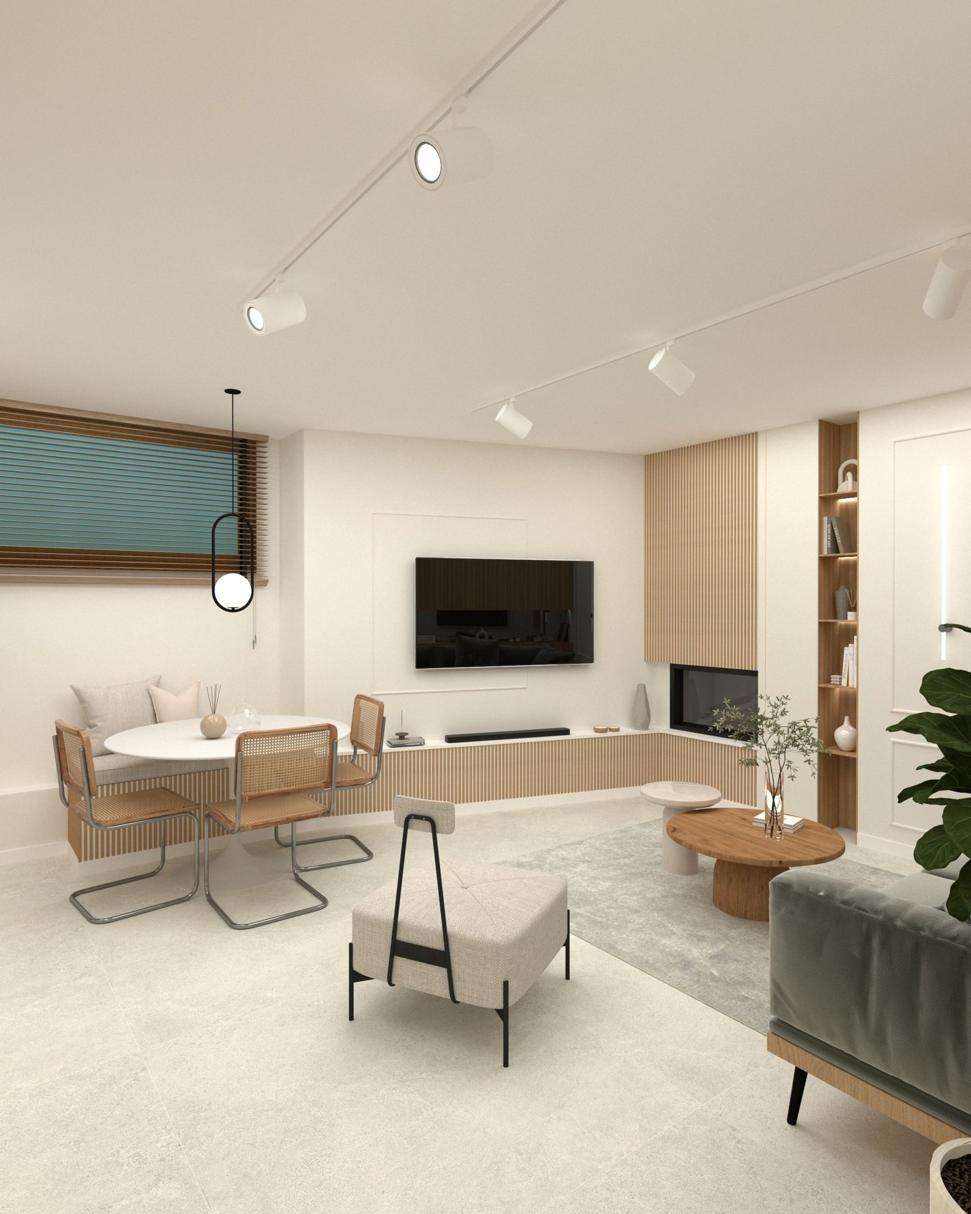 Embracing soft neutrals and warm wood tones, creating an inviting space that feels both serene and delightfully unexpected.
